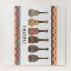 Puzzle with a pattern of six ukuleles with a beautiful geometric, ethnic pattern frame.