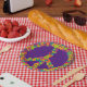 Peace symbols brightly coloured for a hippy style sixties party with a flower power theme.