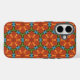 Sixties Orange Red Floral Flower Tiled Repeat Blue Case-Mate iPhone Case