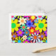A bright and bold floral daisy flower pattern, designed in a retro sixties art style.