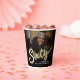 Sixty gold coloured style effect script text on black paper cups. Personalize these cups with two photos of your birthday girl turning 60, one on each side (for past and present plus add your own name or message. Ideal for a 60th birthday party or surprise sixtieth birthday event. Other years and matching items are available. © Original design by Sarah Trett for www.mylittleeden.com on Zazzle.