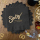 Stamped Foil Napkins, Style: Coined Cocktail, Colour: Black, FoilColour: Gold