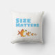 Humourous throw pillow with ‘Size matters’ quote and fish design. Accent pillow for couch, chair or bed. Great gift for one who likes to fish or cabin owner too.