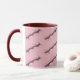 Mug features an original marker illustration of a row of sizzling bacon strips on a pink background.