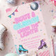 Designed for kids who love roller skating, neon lights, and disco-themed fun, this vibrant invite features glowing pink and aqua neon lettering, sparkling confetti, a mirror ball, and retro roller skates in watercolor style.