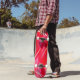 This quality made skateboard is shown with a abstract art pattern print in colours of red and pink multi.