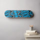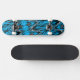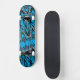 This quality made skateboard is shown with a abstract art pattern print in colours of blue, black, grey.