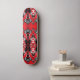 This quality made skateboard is shown with a abstract art pattern print in colours of grey, black and red.