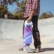 Skateboard is shown in a artful multi colour abstract print.