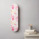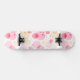 Skateboard is shown in a artful pink multi colour circles abstract print.