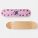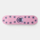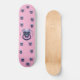 Pink Skateboard with skull and snake design.