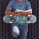 Skateboard Abstrait Bleu Vert Papillon Imaginaire Fractal Art