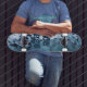 Un design de skateboard jeune avec une belle téture de glace bleue et un texte "de l'âge de glace" désespéré et provocateur.