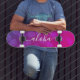 Skateboard Aloha, typographie cool rose violet ananas sombre