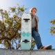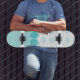 Skateboard Aqua Bleu Damas Avec Ruban Turquoise