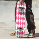 Skateboard Arlequin rose blanc Diamants Checkers Design