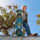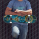 Skateboard Arrière - plan turquoise à vapeur avec engrenages