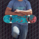 Skateboard Artiste Neon Orange Turquoise Vert Acrylique Peint