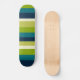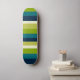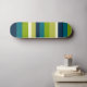Un skateboard avec un design irrégulier et attrayant, rayé dans des couleurs harmonieuses.