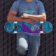 Skateboard Bleu, Turquoise, Tourbillons violets Plat d'art
