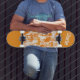 moderne / contemporain Orange et blanc brush strokies et votre nom en skateboard blanc