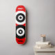 Skateboard Cercles abstraits noir & blanc sur fond rouge