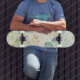 Skateboard Chic menthe vert jaune aquarelle bleu floral