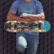 Un design fantaisiste d'un chien portant des lunettes de soleil à vélo dans la ville.