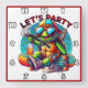 A cool turtle wearing sunglasses and a cap enjoys a drink and cigar, relaxing on a skateboard in a vibrant atmosphere filled with stars.