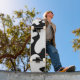 planche à roulettes noire et blanche de motif du Holstein