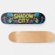 Titre : Planche de skateboard de la ville de l'ombre | Graffiti Ukiyo-E psychédélique | Imaginaire foncé Urban Street Skull Design Description : Entrez dans la ville de l'ombre, où l'art japonais ancien côtoie l'esprit urbain moderne! Ce jeu de skateboard en édition limitée présente une fusion fascinante de motifs de blocs de bois Ukiyo-e et d'art de rue psychédélique, centré autour d'un crâne stylisé orné de motifs ornés et de graffitis dynamiques. Entouré d’un paysage urbain néon aux reflets brillants et aux ruelles ombragées, ce design canalise l’imaginaire sombre en une oeuvre d’art fonctionnelle. Que ce soit pour broyer des rails ou pour le suspendre comme décor de mur, ce pont incarne l’esprit rebelle de la narration sous-culturelle. 🎨 Design Story : Central Motif : Un crâne méticuleusement détaillé avec des motifs à vagues et à fleurs inspirés d'Ukiyo-e, superposés à la typographie des graffitis ("Ville de l'ombre"). Arrière - plan : Un paysage urbain flou, imprégné de néons, avec des gratte-ciel minimalistes et des ruelles cachées, évoquant mystère et profondeur. Détails du bord : Signes occultes lumineux et motifs du crâne secondaire illuminés par une source lumineuse éthérée. Palette de couleurs : Les néons électriques (cyan, magenta, vert acide) contrastent avec les noirs moody et les violets profonds.