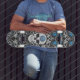 Le crâne gothique au pentagramme est entouré de crânes plus petits. Cette conception diabolique du crâne transforme votre skateboard en une conduite méchante !