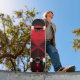 Push the limit with this crimson synthwave skateboard. This high-intensity design features a sleek sports car speeding toward a massive red neon sun. With silhouetted palm trees and a glowing road, it captures the raw energy of 80s futurist and cyberpunk night racing. Perfect for those who want an aggressive, bold look for their next session or as a statement piece of retrowave wall art.