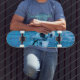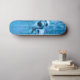 Scander des crânes bleus sur un arrière - plan de brique grungy est un skateboard méchant design que tout le monde aimera.