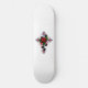 Croix d'argent avec une rose rouge et des feuilles noirs sur un arrière - plan blanc.