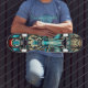 Le "Deco Broadcast Hub Deck" est un graphisme de skateboard sur le thème du Decopunk qui envisage un studio de radiodiffusion des années 1930, mis à jour avec la technologie futuriste. Ce studio est représenté comme un centre dynamique de communication et d'innovation, fusionnant le style Art déco avec des équipements de radiodiffusion modernes et des écrans numériques. Le studio bourdonne d'énergie, mettant en vedette les radiodiffuseurs et les techniciens utilisant des équipements de pointe pour transmettre l'information. Le design combine le glamour de l'ère Decopunk avec la nature avant-gardiste des médias modernes, avec une palette de couleurs de blues de diffusion, d'argent métallique et de rouge dynamique. Il symbolise la fusion du style historique avec les technologies de communication futures, incarnant l'esthétique unique de Decopunk où l'élégance passée rencontre l'innovation future.