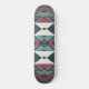Native Southwestern Triangle Motif Skateboard Deck par TheFabricSeal à Zazzle. Le style artistique du sud-ouest de l'Inde a influencé la conception de motifs sur couvertures, tapis et tapis. Cette ligne géométrique design est élégante avec des formes croisées de pointes de flèche, de diamants et de pyramides remplis de couleurs palette de tons turquoise, noir, blanc, gris fusain foncé, bleu ciel clair, vert forêt, vert kaki et rouge indien.