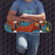 Un jeu de skateboard pour les amoureux de la nature, avec deux salamandres de dessins animés souriants. L'une est une salamandre rouge (surprise !) et l'autre une salamandre au feu. Pas littéralement lié, mais formant une forme agréable (une version plus petite du dessin complet est insérée à une extrémité du tableau). Les salamandres rouges viennent d'Amérique du Nord, les salamandres de feu d'Europe continentale et des régions environnantes.