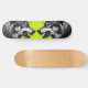 Un design numérique de deux loups en blanc, noir et vert citron.