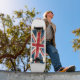 Cet article a le drapeau britannique dans un style en détresse qui est légèrement en angle. Le drapeau est rogné dans une barre horizontale avec des arêtes dissoutes. Le Royaume-Uni de Grande-Bretagne et d'Irlande du Nord utilise comme drapeau national la bannière royale connue sous le nom de drapeau de l'Union ou de Union Jack — techniquement, ce dernier terme, bien que le nom le plus courant du drapeau, désigne son utilisation comme jonc naval en mer[1]. La conception actuelle du drapeau date de l'union de l'Irlande et de la Grande-Bretagne en 1801. Il se compose de la croix rouge de Saint-Georges (patron de l'Angleterre), bordée de blanc, superposée à la croix de Saint-Patrick (patron de l'Irlande), qui est superposée au Saltire de Saint-André (patron de l'Écosse). Le Pays de Galles, cependant, n'est pas représenté dans le drapeau de l'Union par Saint David, le patron du pays de Galles, car à l'époque le drapeau était conçu le Pays de Galles faisait partie du Royaume d'Angleterre.