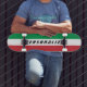 Drapeau italien patriotique nom personnalisé pont de planche à roulettes. Conception de skate board en bois cool pour garçons et filles. Amusant idée cadeau d'anniversaire pour les enfants. Personnalisez avec un nom personnalisé ou des lettres monogrammes. Awesome Birthday idée cadeau pour enfants, fils, petit-fils, neveu, cousin, fille, soeur, frère, amis etc. Modèle de typographie moderne. Drapeau de pays Tricolore de l'Italie design avec modèle de typographie moderne.