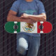 Libérez votre patineur intérieur avec le joli et magnifique tableau de bord du drapeau mexicain. Parfait pour les débutants comme pour les coureurs chevronnés, ce plateau apporte une culture vivante à vos séances de patinage quotidiennes. Le design accrocheur met fièrement en valeur les couleurs audacieuses du drapeau mexicain, exigeant instantanément l'attention partout où vous voyagez. Conçu pour la performance, son tablier durable offre une stabilité et un contrôle inégalés, vous permettant d'effectuer des tours sans effort et de glisser en douceur. Sentez l'esprit du Mexique sous les pieds en profitant d'une expérience passionnante de planche à roulettes.