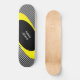 Motif d'échecs noir et blanc, lignes ondulées jaune avec centre noir et calligraphie Skateboard.