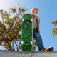 Un skateboard avec un design abstrait intéressant et diversifié, composé de formes circulaires de différents styles reliés par des lignes fines comme un réseau ou un écosystème.
