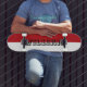 elegant red white personalized name skateboard, modern red white custom name skateboard .