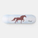 Elégante silhouette et calligraphie de cheval brun sur Skateboard bleu ciel clair. Le texte peut être personnalisé.