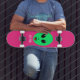 Skateboard Enfants Alien Tête verte rose rose Nom personnalis