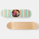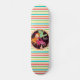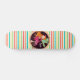 Fée mignonne, rose girly et violet avec ailes vertes assis sur un champignon sur bandes colorées arc-en-ciel, rouge, orange, jaune, vert, aqua motif turquoise.