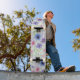 Skateboard Fleur d'aquarelle bleu violet rose du Pays
