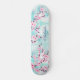 Cerisiers botaniques roses fleurissent sur un arrière - plan bokeh turquoise. Customisez ce Skateboard design japonais avec le nom de votre fille !